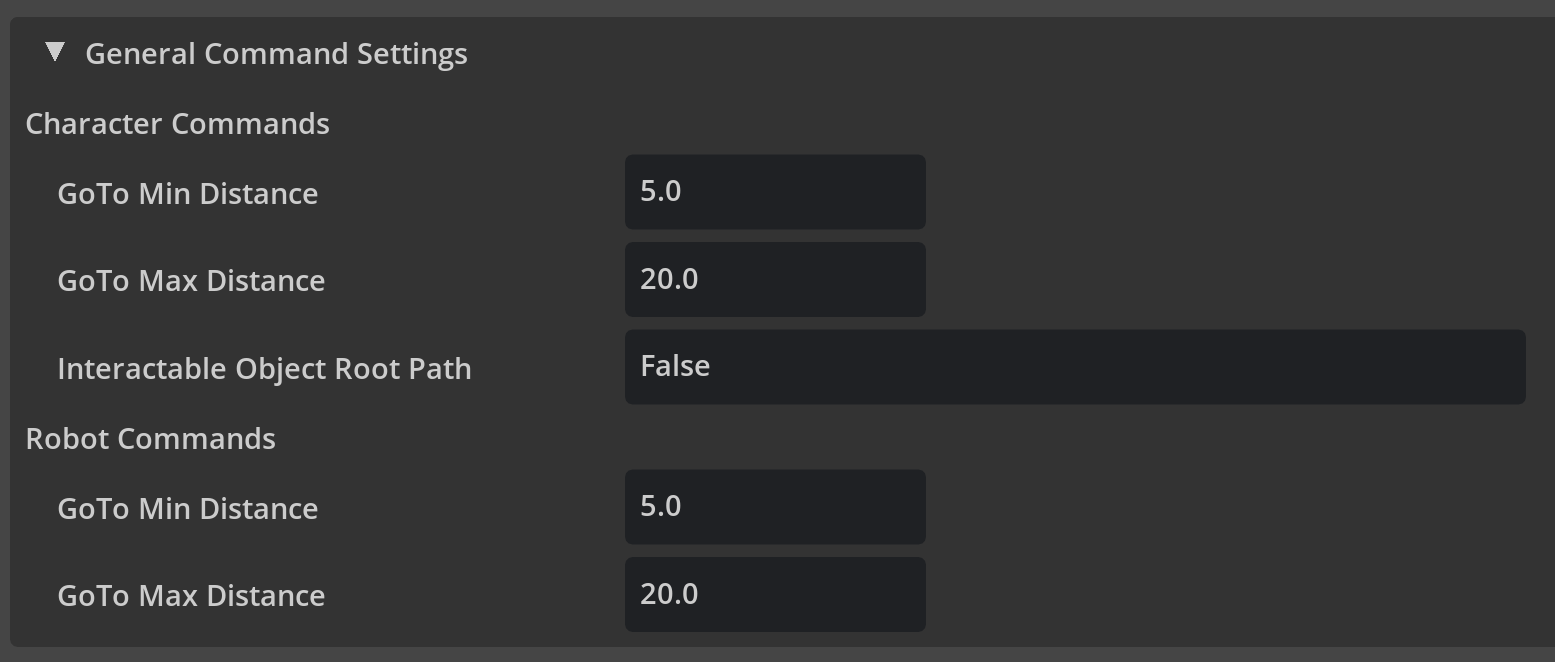 : The minimal distance (in meters) between the picked location and the character’s current location for “GoTo” and “GoToBlend”. Default is5.0