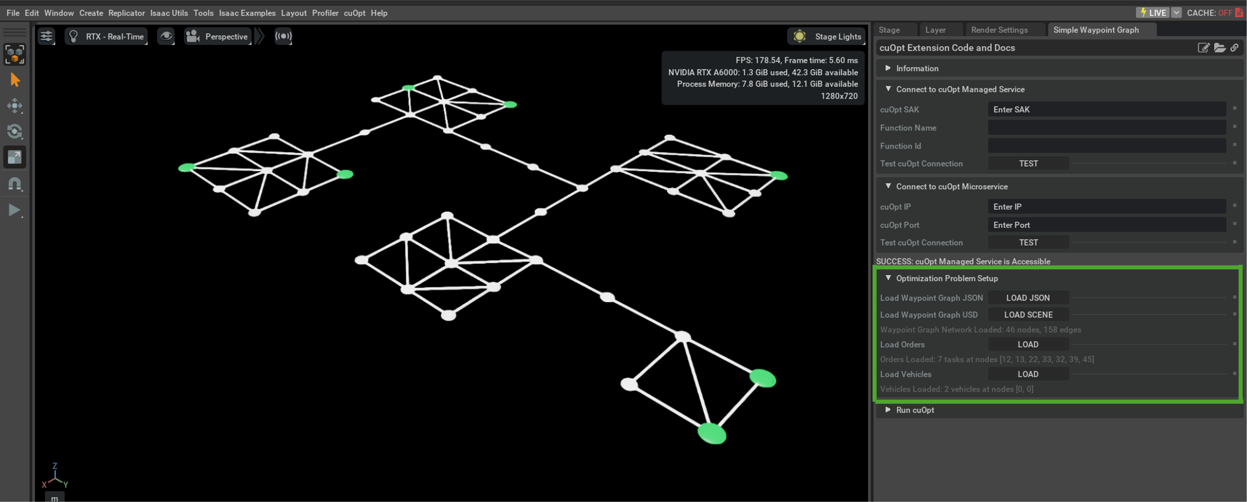 ) navigate to the cuOpt menu item now present in the Isaac Sim interface and select Simple Waypoint Graph.Enter the credentials assigned to you for the NVIDIA cuOpt managed service.