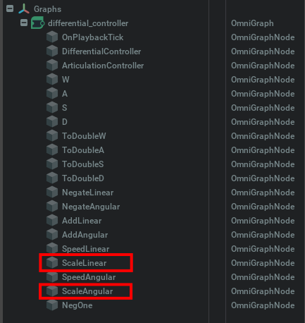 If you did not include the WASD keyboard control in the graph, you can always test the controller by manually changing the “Desired Angular Velocity” and “Desired Linear Velocity” in the DifferentialController node under the newly created graph.