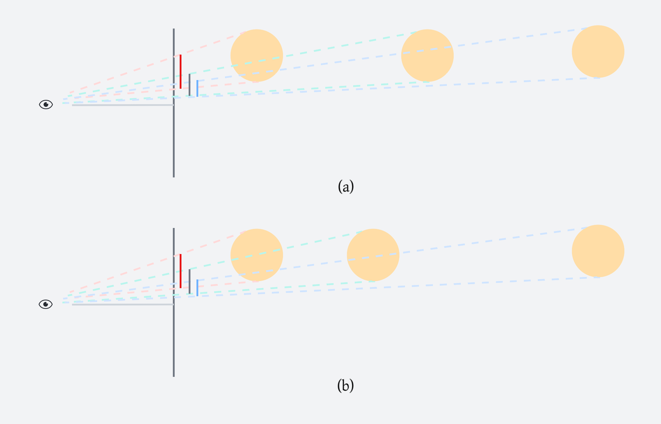 Camera frustum doesn’t scatter objects uniformly along the line of vision. It’s scattered more often in the near field and the far field, such that the probability density of projected area is constant. For example, below is a uniformly sampled in (a) while sampling more in the near field in (b). In (b), the projected areas are more evenly spaced compared to (a).