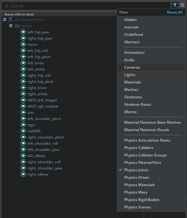 left_hip_yaw), shift left click on the last joint (right_elbow) to select all the joints.Right click on any selected joint, and click Add > Physics > Joint State Angular to create a joint state API attribute to the joints