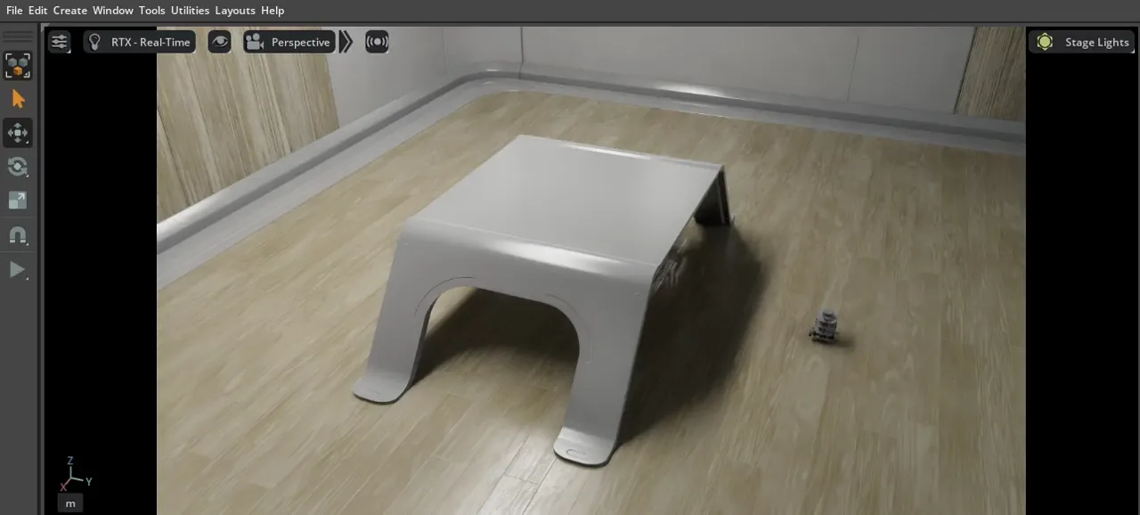 For this tutorial, you will add two stationary cameras, naming them Camera_1 and Camera_2, viewing the room from two different perspectives. The procedures for adding cameras to the stage can be found in Tutorial 4: Add Camera and Sensors to a Robot.