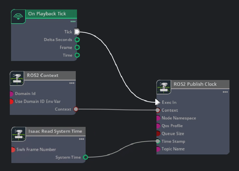 In upcoming tutorials you will observe the ROS 2 Camera Helper node and the ROS2 RTX Lidar Helper node. As both of these nodes automatically generate a sensor publishing pipeline, to use system timestamps for their publishers, ensure that their useSystemTime input field is set to True.