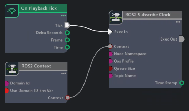 Verify that the timeStamp value in the ROS2 Subscribe Clock OmniGraph node changes to 1.2.