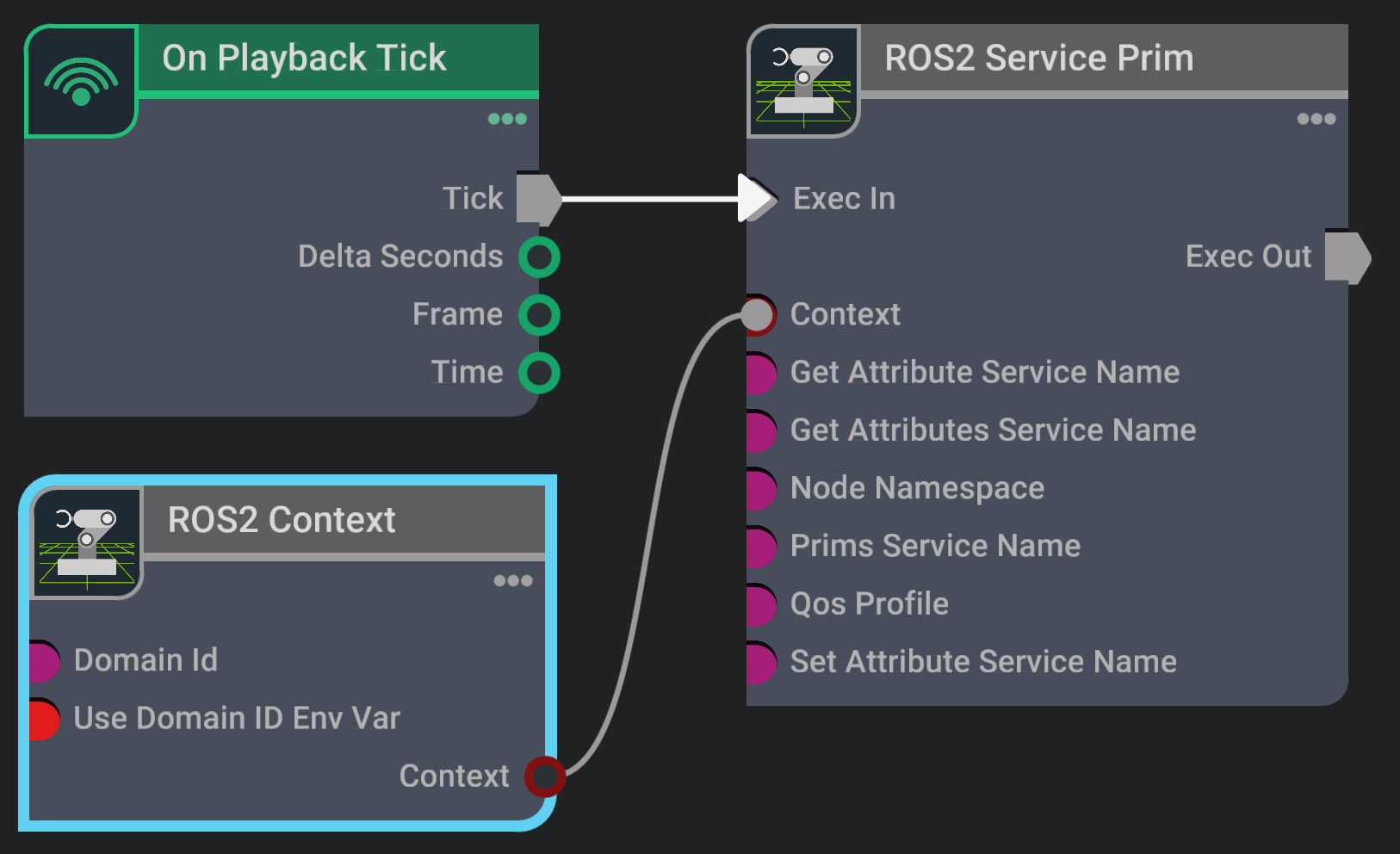 Go to Window > Graph Editors > Action Graph to create an Action Graph and add, connect and configure the following OmniGraph nodes into the Action Graph: