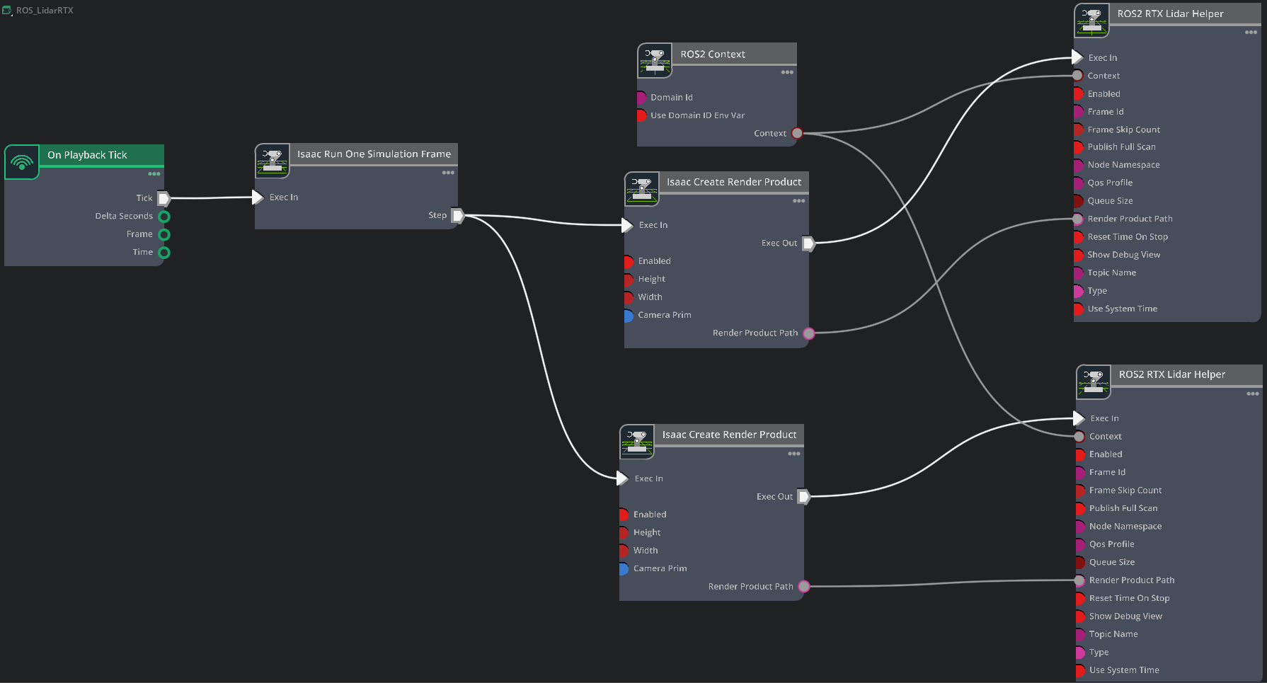 ROS_DOMAIN_IDfrom the environment in, which you launched the current instance of Isaac Sim.Isaac Run One Simulation Frame: This is the node to running the create render product pipeline once at the start to improve performance.