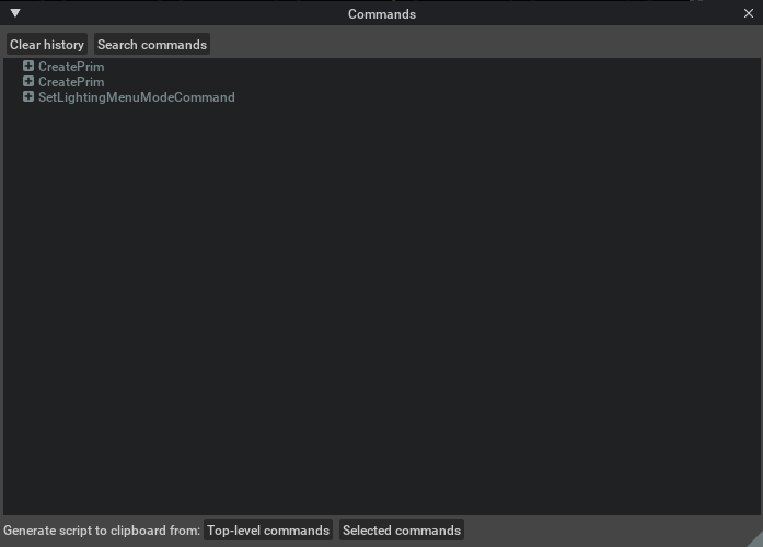 Selected commands: Generate Python scripts corresponding to selected commands in history and copy to clipboard.